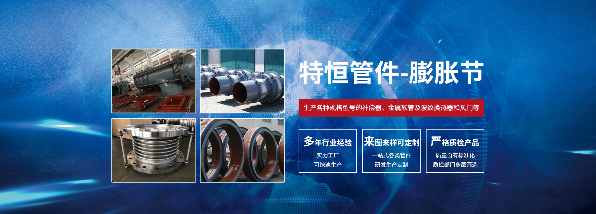 01 / 04  源頭廠家,實(shí)力雄厚公司專業(yè)從事設(shè)計(jì)、生產(chǎn)金屬膨脹節(jié)、不銹鋼膨脹節(jié)、高溫膨脹節(jié)的廠家。工廠擁有各種先進(jìn)生產(chǎn)、加工、檢測(cè)設(shè)備強(qiáng)大的技術(shù)力量。